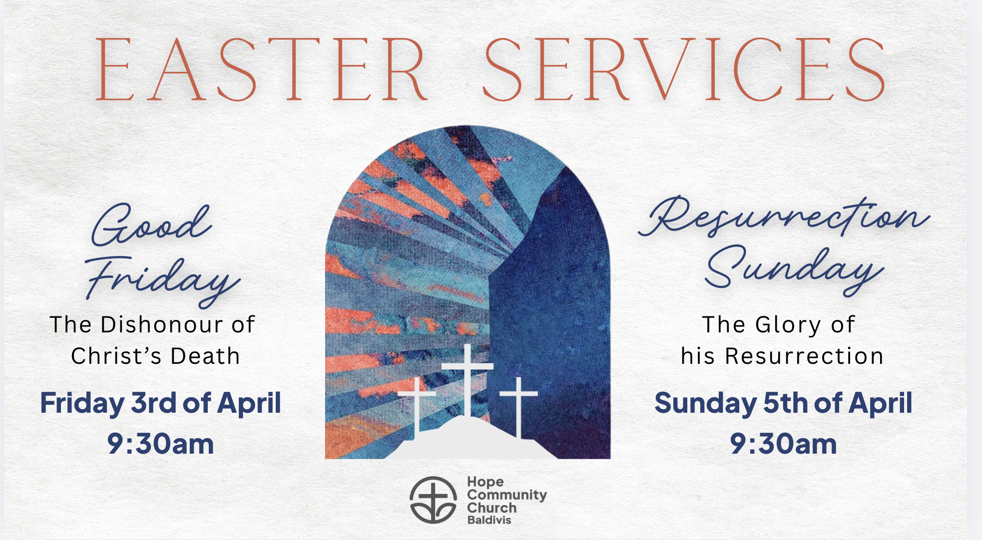 The service begins at 9:30am and goes just over an hour. After the service we welcome you to stay for morning tea and a friendly chat!